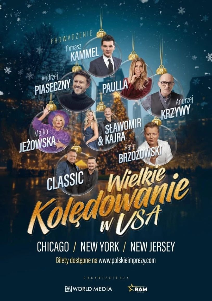Andrzej Piaseczny, Paulla, Majka Jeżowska, Sławomir i Kajra, Andrzej Krzywy, Zespoł Classic, Rafał Brzozowski i Tomasz Kammel wystąpią na Wielkie Kolędowanie W USA 2025. Wybierz lokalizację i kup bilet już teraz! Nie czekaj – w poprzednich edycjach bilety wyprzedawały się przed czasem.